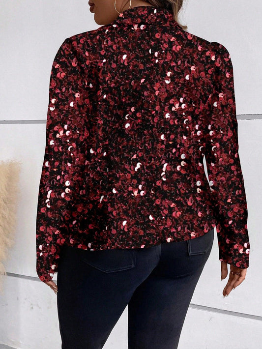 SHEIN Clasi Plus Size Women Autumn Sequin Collar Long Sleeve Blazer Jacket, For Christmas