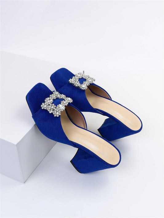 Regular price £18.50 GBPRegular priceUnit price / per£23.50 GBPSale price £18.50 GBPWomen's Blue Pointed Toe High Heel Slip-On Sandals With Rhinestone Square Buckle, Elegant Shallow Heel Shoes For Office