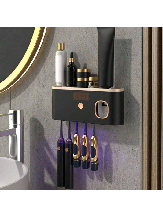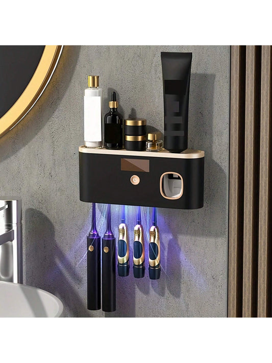 1 Smart Toothbrush Sterilizer, Wall Mounted Toothbrush Holder With Toothpaste Dispenser, Toothbrush Holder And Disinfection Device, Toothbrush Storage Rack, Toothbrush Storage Rack With 5 Brush Slots, Bathroom Accessories, Home Decor Back To School