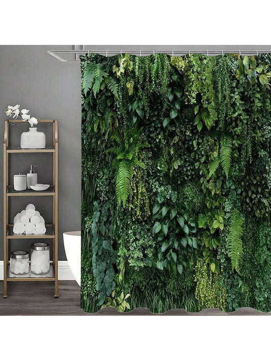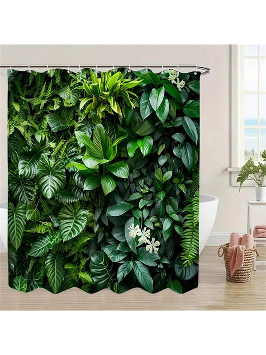 1pc Polyester Wall-Mounted Shower Curtain - High Quality No-Drill Bathroom Decor With Hooks, Dense Foliage Floral Design, Machine Washable For Privacy