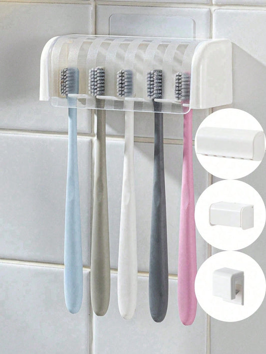1pc No-Drill Wall Mounted Toothbrush Holder With Cover, Electric Toothbrush Storage Rack, Toothpaste Holder, 2/5/6 Slots Self-Adhesive Toothbrush Organizer, Bathroom Storage Accessories (White), Home