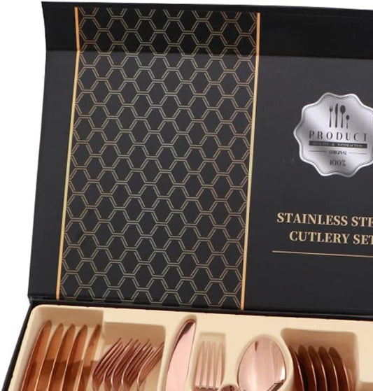 Regular price £45.00 GBPRegular priceUnit price / per£52.00 GBPSale price £45.00 GBPNatudeco 24Pcs Stainless Steel Flatware Set for 6 Steak Fork Spoon Set Mirror Finish Cutlery for Home Restaurant Party (Rose Gold)