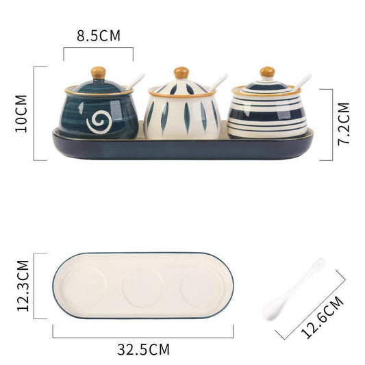 Household Kitchen Condiment Pot Ceramic Suit