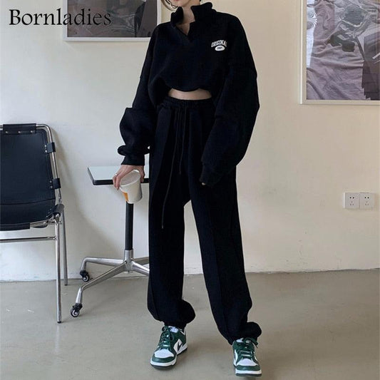 Bornladies Women Cotton Sweatshirt Suit Oversized Sets