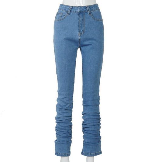 Regular price £25.97 GBPRegular priceUnit price / perSale price £25.97 GBPWomen Ruched Denim Blue High Wait Stacked Pants