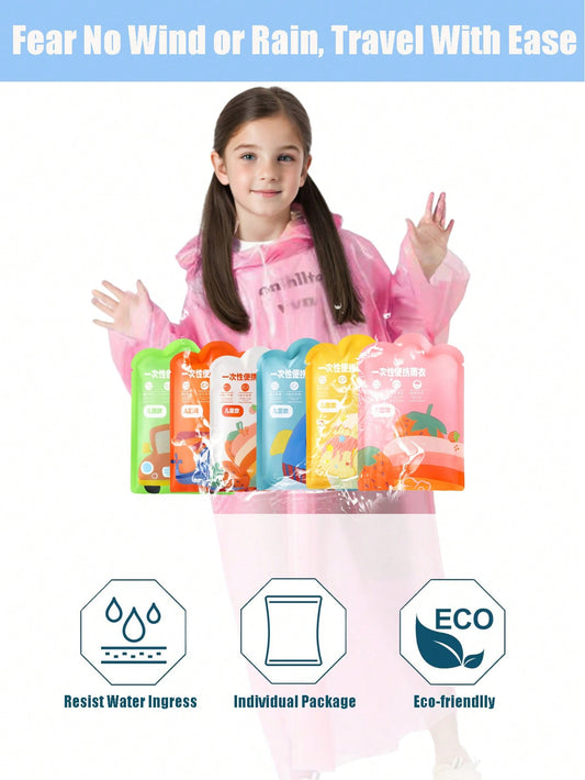 6pcs Kids Disposable Rain Poncho, Thickened Full Body Waterproof With Backpack Hole, For Boys And Girls, Suitable For Outdoor Activities And School