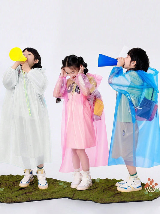 3pcs Disposable Poncho Raincoat For Kids, Drawstring, Suitable For Boys And Girls, Elementary And Middle School Students, Portable Raincoat For Travel, Outdoor Activities, Music Festivals, Amusement Parks