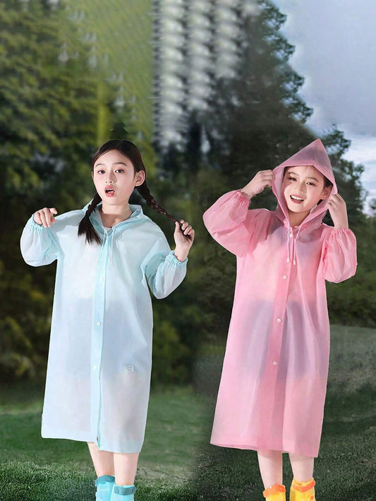 1pc Reusable Hooded Poncho Rain Coat, EVA Lightweight Waterproof Rainwear, Children Rain Jacket With Backpack Vent, Unisex Student Thickened Long Full Body Rain Poncho