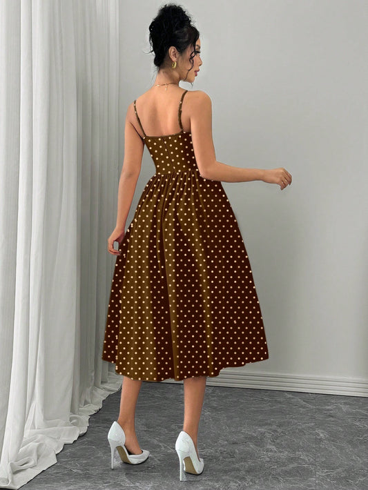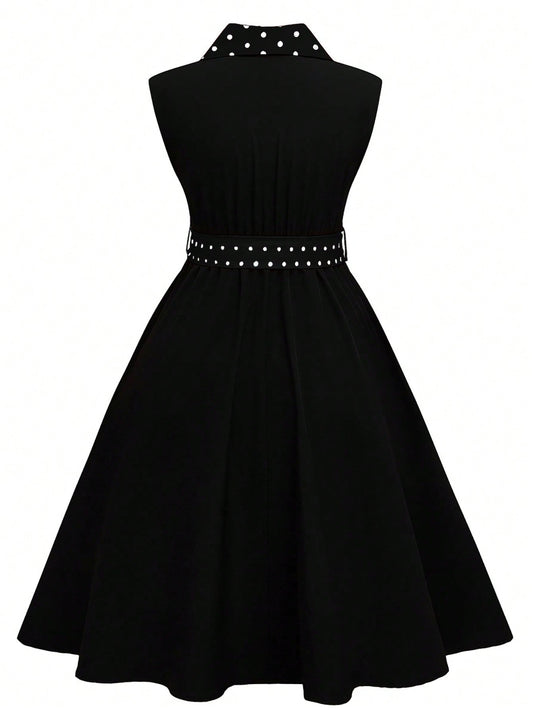 Plus Size Polka Dot Print Belted Sleeveless Dress