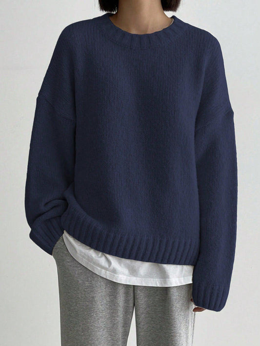 DAZY Solid Drop Shoulder Sweater Without Blouse,Long Sleeve Tops