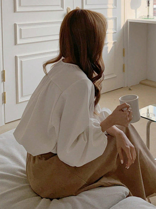 DAZY 1pc Women Solid Color Lantern Sleeve Blouse, Business Casual, Autumn