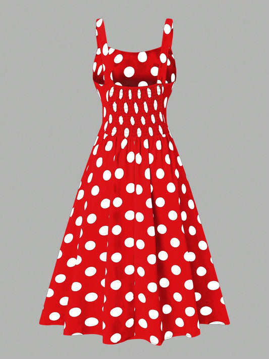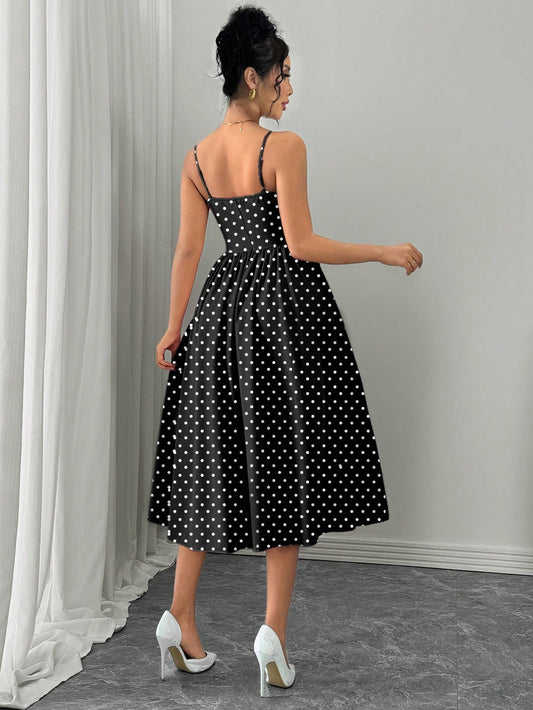 Celure Plus Size Women's Summer Polka Dot Print Pleated Elegant Spaghetti Strap Dress For New Year Clothes