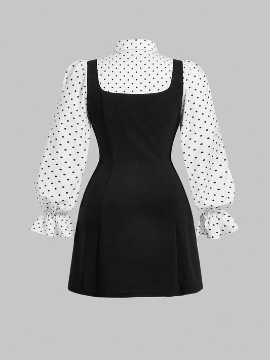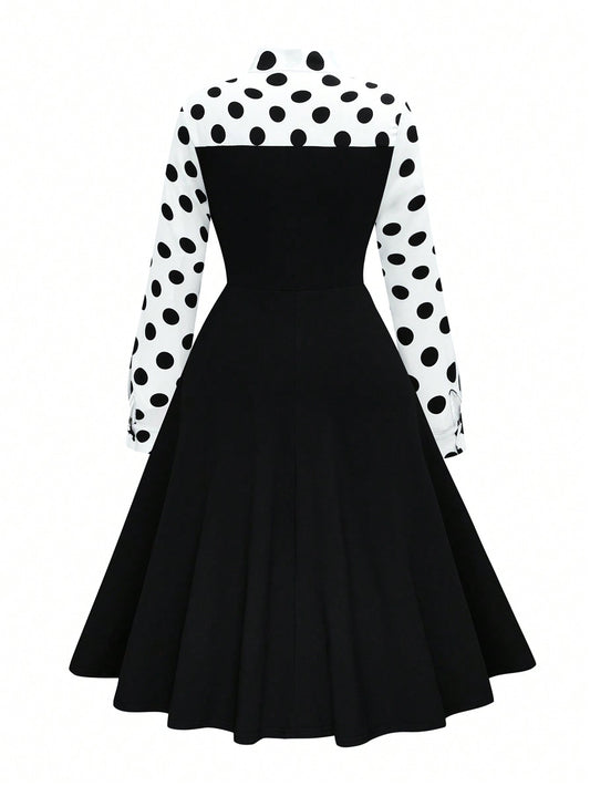 Vendor:SheinRegular price £21.08 GBPRegular priceUnit price / per£28.08 GBPSale price £21.08 GBPPlus Size Elegant Polka Dot Print Knot Detail Splicing Dress, Autumn Maxi Women Outfit