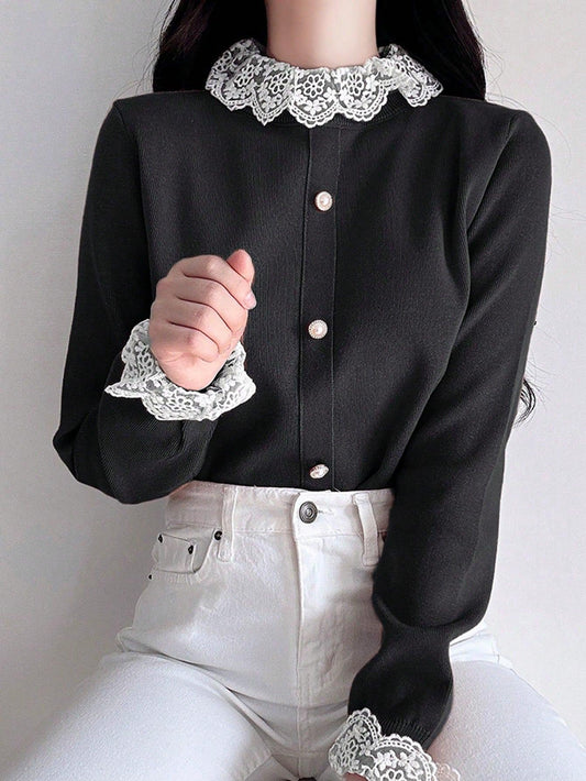 DAZY Lace Patchwork Fashion High-End French Style Knitted Sweater For Women