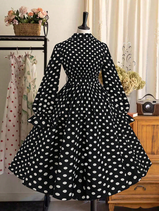 Vendor:SweetraRegular price £18.89 GBPRegular priceUnit price / per£25.89 GBPSale price £18.89 GBPSweetra Plus Size Polka Dot Print Bowknot Belted Vintage Mid-Length Black Elegant Women Dress With Lapel, Long Sleeve Maxi Women Outfit