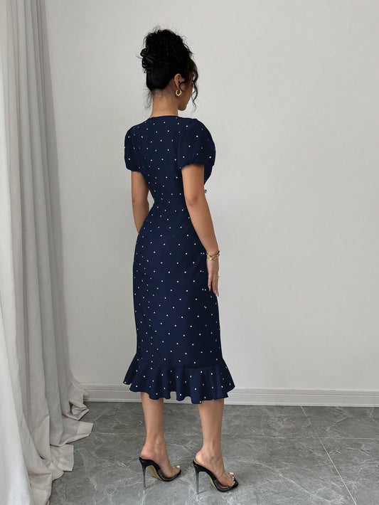 Vendor:RafferizaRegular price £11.69 GBPRegular priceUnit price / per£18.69 GBPSale price £11.69 GBPRafferiza Elegant Lantern Sleeve Bowknot Ruffle Polka Dot Print Dress, Stylish Dress For Women, Black