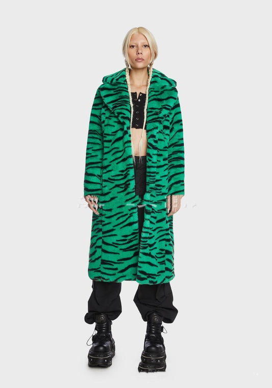 Faux Fur Coat Tiger Leopard Print