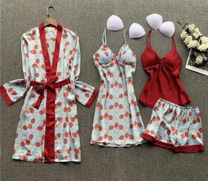 Seven-Piece Pajamas Simulation Silk Long-Sleeved Cardigan Spring And Autumn Set
