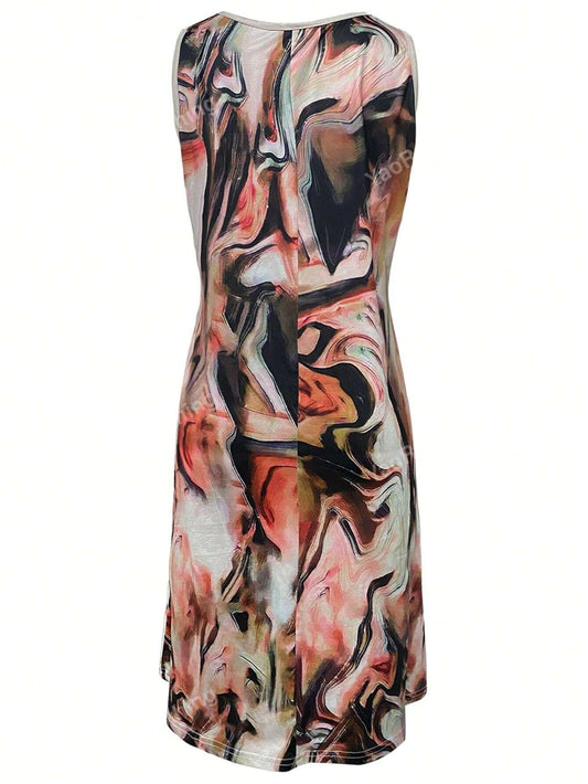 Regular price £11.49 GBPRegular priceUnit price / per£12.49 GBPSale price £11.49 GBPVintage Fashionable Digital Printed Sleeveless Notched Neckline Tank Dress, Spring/Summer