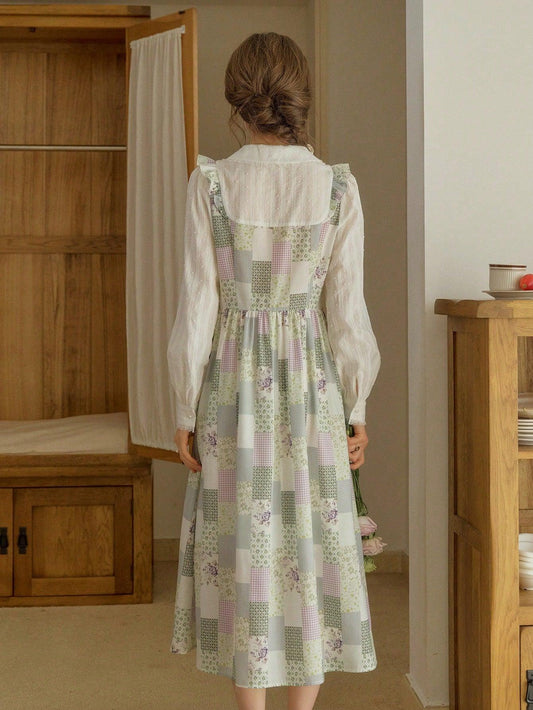 Regular price £41.36 GBPRegular priceUnit price / per£42.36 GBPSale price £41.36 GBPSimple Retro Women's Spring Summer Casual Peter Pan Collar Random Print Green Elegant Retro Elegant Valentine's Day Long Dresses