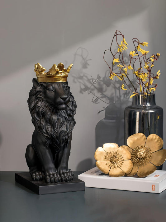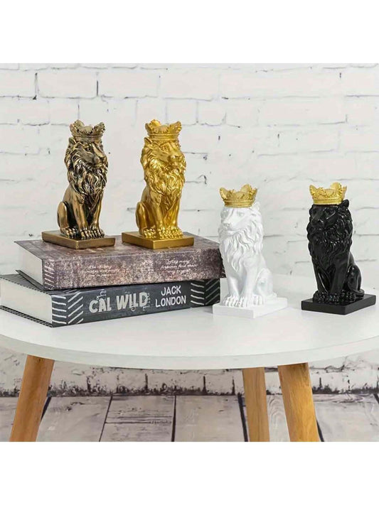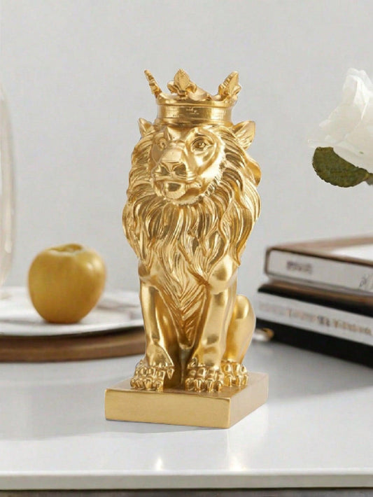 1pc Resin Crown And Lion Shape Home Decor, Crown Lion King Statue, Nordic Style Home And Study Room Decoration, Collectible Figurines, Best Gift For Men Birthday