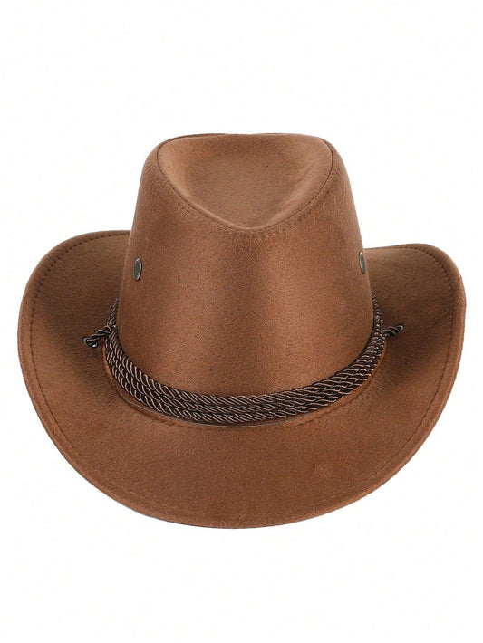 Regular price £7.90 GBPRegular priceUnit price / per£14.90 GBPSale price £7.90 GBP1pc Men Fashion Wide Brim Soft Wool Blend Cowboy Hat, Various Decorated Style, Rolled Brim Peaked Cap, Suitable For Stage Performance, Party, Unisex