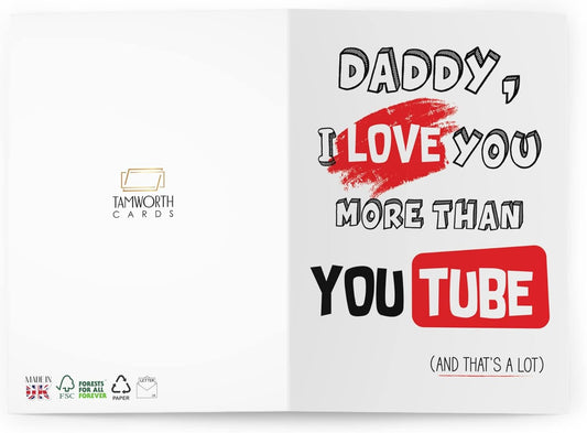 Father's Day Card - 'I Love You More Than YouTube' - Cute Greeting Card for Dad