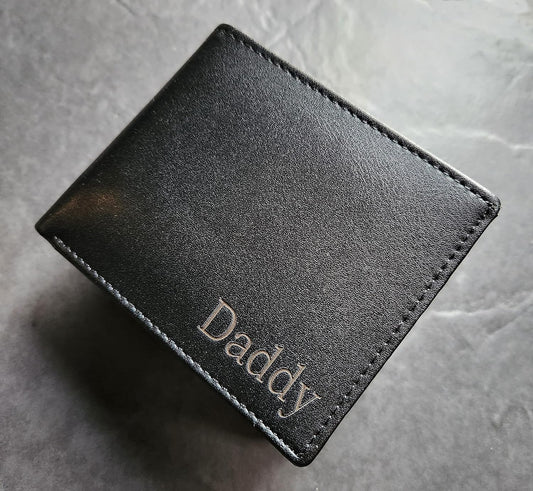 Personalised Men's Black Leather PU with Coin Compartment Personalized Wallet - Great Gift for Dad, Daddy, Grandad, Uncle, Son, Brother. Custom Name and Text/Wording