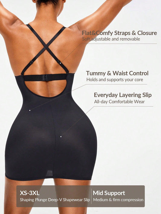 SHEIN Shape Shaping Plunge Deep-V Shapewear Slip Dress Body Shaper Bust
