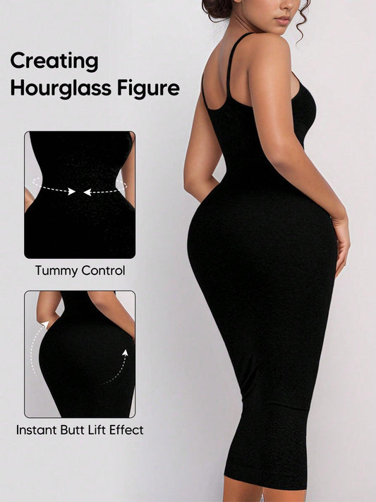 1pc Women's Adjustable Strap Shaping Bodycon Slip Dress, Suitable For Layering Or Outerwear