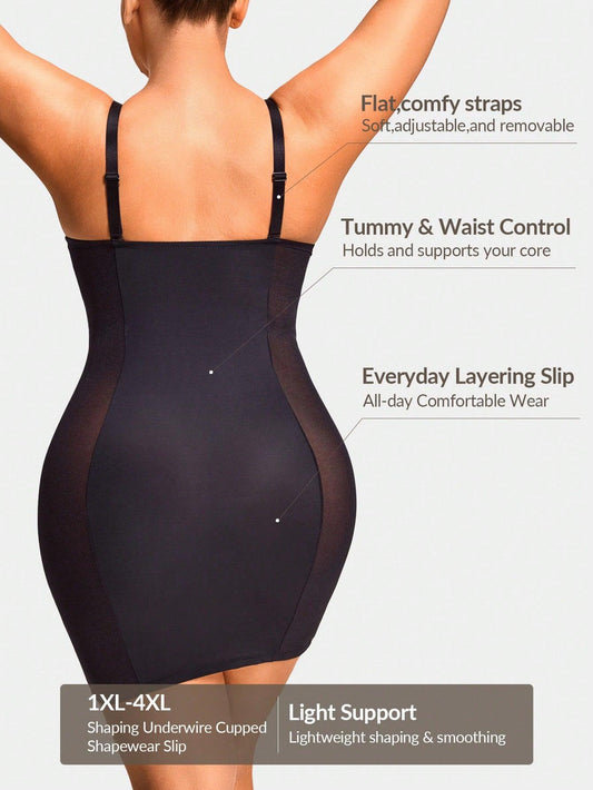 SHEIN Shape Plus Size Shaping Underwire Cupped Shapewear Slip Dress Body Shaper Bust