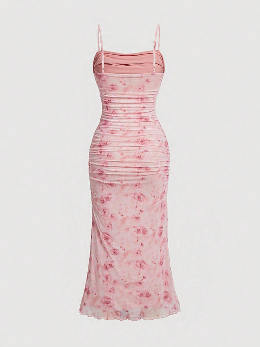 Vendor:SHEINRegular price £15.99 GBPRegular priceUnit price / per£16.99 GBPSale price £15.99 GBPFloral Print Ruched Mesh Cami Long Dress