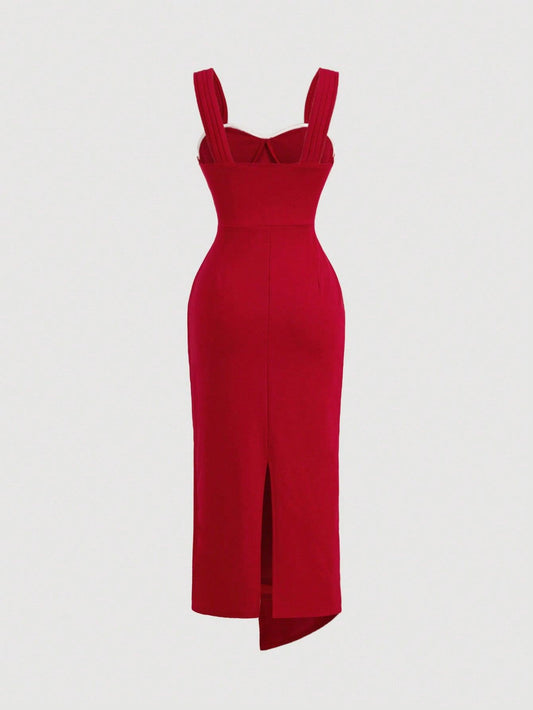 Vendor:SHEINRegular price £20.99 GBPRegular priceUnit price / per£23.99 GBPSale price £20.99 GBPRed Glitter Twist Front Spaghetti Strap Sleeveless Dress