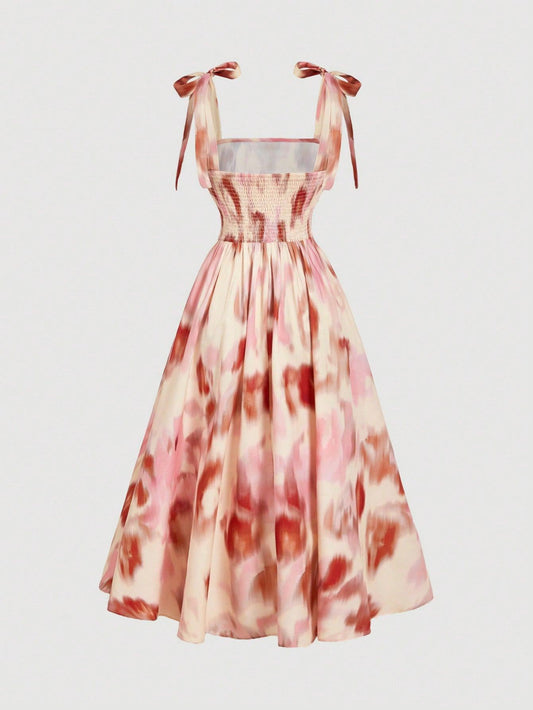 Vendor:SHEINRegular price £17.49 GBPRegular priceUnit price / per£18.49 GBPSale price £17.49 GBPRuffled Neckline Sleeveless Bow Tie Waist Vintage Print