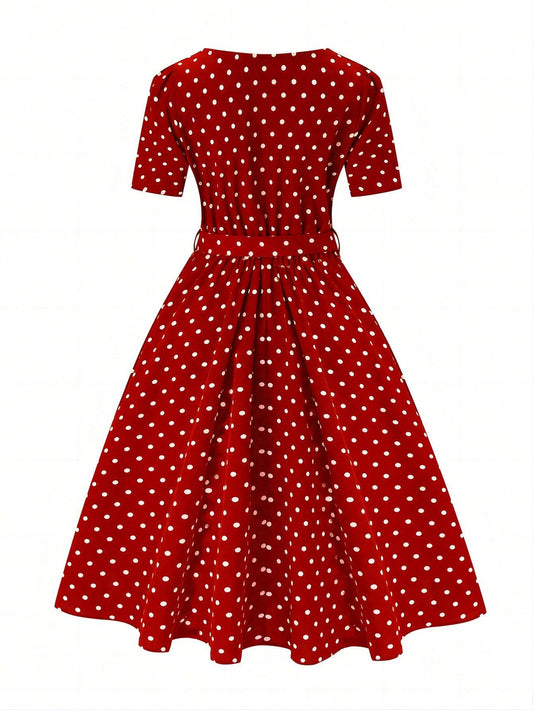 Polka Dot Printed Short-Sleeve Flowy Dress