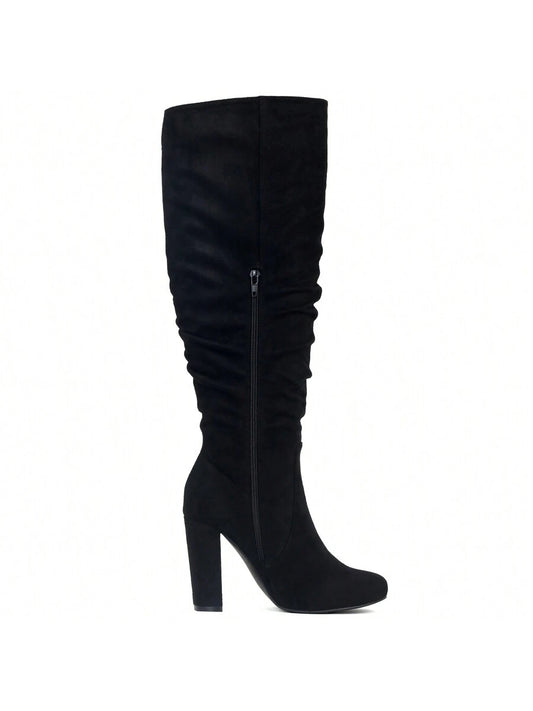 READY SALTED Womens Suede Fashion Knee High Boots Women's High Heel Comfort Boots Women's Side Zip Walking Shoes