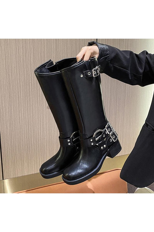 Regular price £132.36 GBPRegular priceUnit price / perSale price £132.36 GBPSquare Toe Hollow-out Chunky Heel Cowhide Commuter Long Fashion Boots