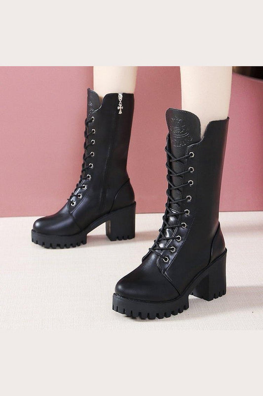 Heeled Boots For Women Round Toe Lace Up