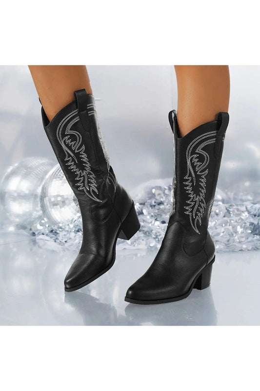 Chunky Heel Pointed Toe Mid-Calf Boots