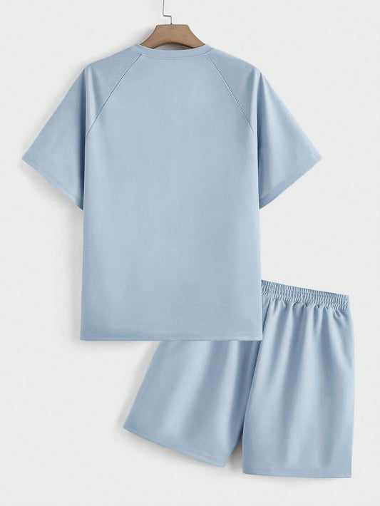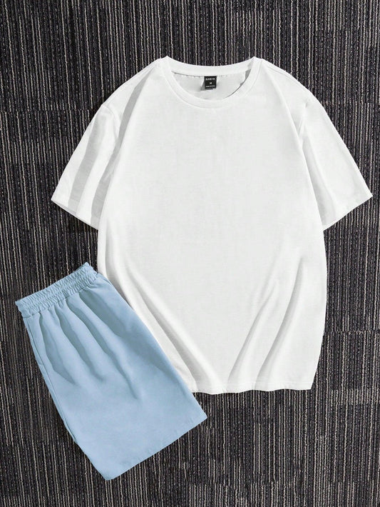 Manfinity RelaxMax Men Simple Plain Short Sleeve Tee And Shorts Two Piece Set
