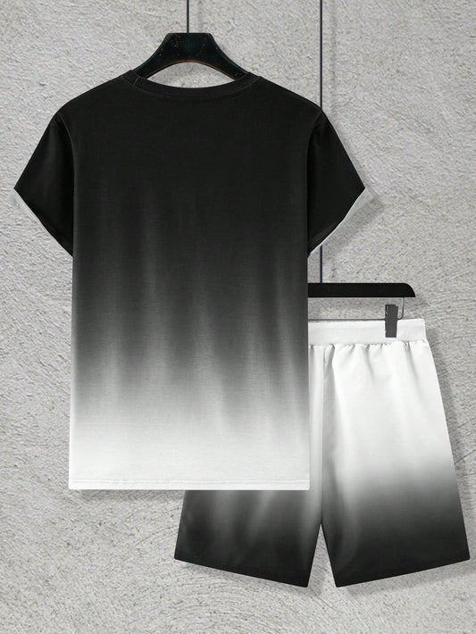 Men's Casual Short-Sleeved T-Shirt And Shorts Set, Round Neckline, Suitable For Commuting
