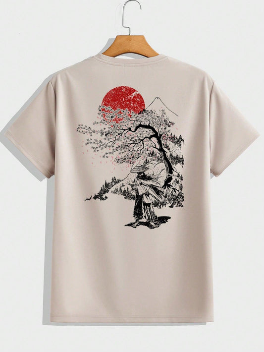Manfinity Homme Men's Summer Branch Print Round Neck Short Sleeve Casual T-Shirt And Drawstring Waist Shorts Set