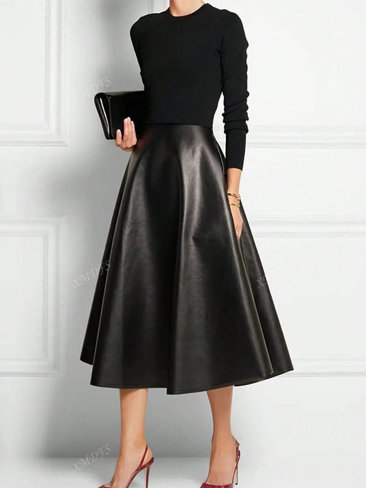 Regular price £23.75 GBPRegular priceUnit price / per£25.41 GBPSale price £23.75 GBPXMDFS French Elegant Solid Color High Waist Skirt, Fashion A-Line Mid-Length Skirt For Spring, Summer And Autumn, Suitable For Party, Office, Women
