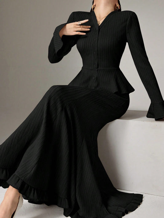 Regular price £29.15 GBPRegular priceUnit price / per£31.19 GBPSale price £29.15 GBPHeiryn Everyday Elegant Women Long Sleeve Blouse And Mermaid Style Skirt Set