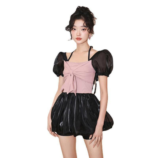 One-piece Fluffy Skirt Puff Sleeve Swimwear