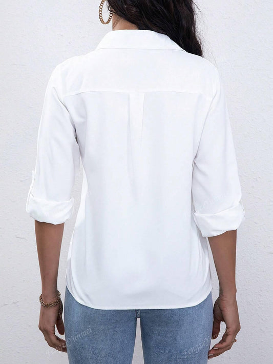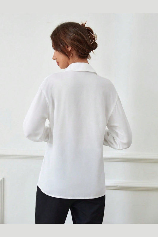 Women's Button-Up Elegant Casual Versatile White Shirt Blouse