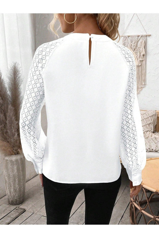 SHEIN LUNE Women's Lace Raglan Long Sleeve Blouse