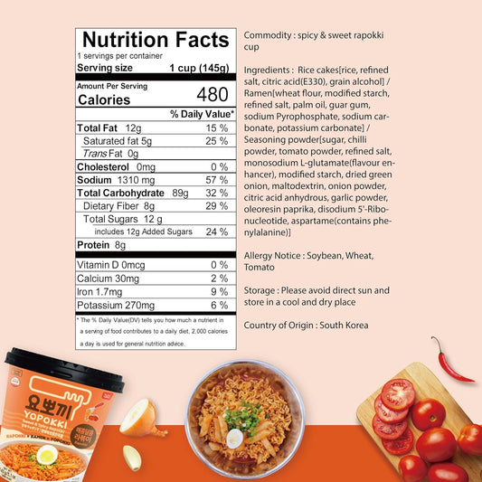 Yopokki Instant Rabokki Cup (Sweet Mild Spicy, 2 Cups) Korean Street food with sweet and moderately spicy sauce Ramen Noodle Topokki Rice Cake - Quick & Easy to Prepare