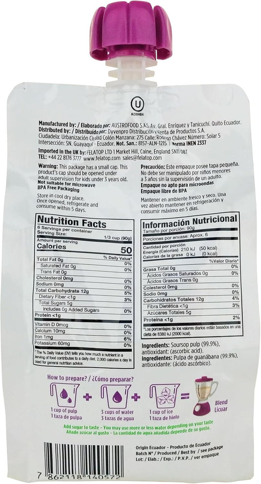 WanaBana Soursop Fruit Pulp Pack of 6-500g per Unit for Juice, Smoothies, Desserts, Ice Cream, Cocktails, Sauces