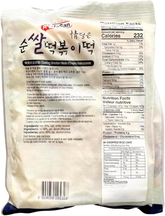 A Hosan Korean Tteokbokki Rice Cake Sticks 500g | Chopped Teokboki Korean Street Food (Pack of 1)